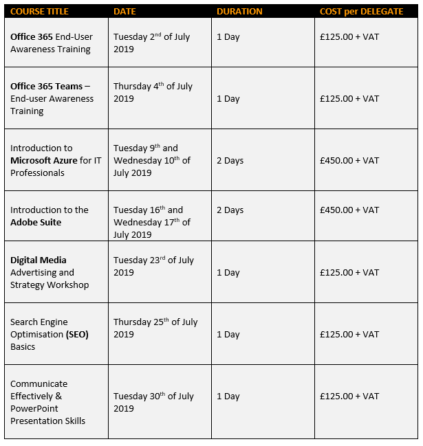 The full description of the training courses can be viewed on our website by following this link. If you can’t find the course you are looking for or perhaps would like to discuss your IT training requirements, please contact us at [email protected].